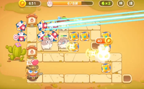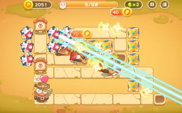 1、首先玩家需要在上方位置放置两个飞机炮台进行清除障碍物,利用穿透攻击小怪可以节约时间。