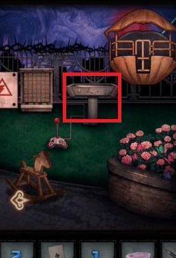 在篮球机上输入273,随后将篮球投进去,即可获得2按钮。回到可以装电池的位置,随后如图即可,之后操控把手,转动摩天轮,获得齿轮、线索。