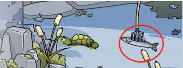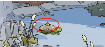 1、点击河里乌龟的背就能获得盾牌。