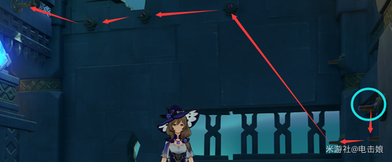 下图机关,需要雷系角色,推荐用丽莎E技能激活,开启大门