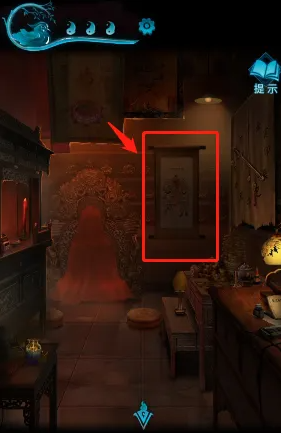 3、在放置之前我们要去到六宝阁然后点击墙壁上的画像。