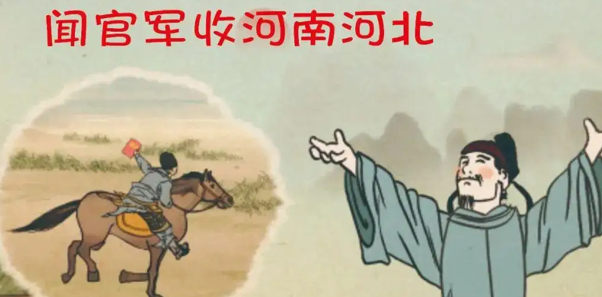“剑外忽传收蓟北,初闻涕泪满衣裳”,出自唐代杜甫的《闻官军收河南河北》