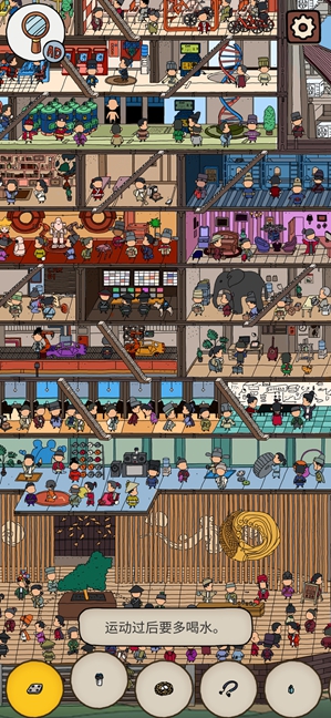 1、根据提示,我们知道这是在提示运动之后要多喝水,那么水杯也可能是在第二层的健身房内,所以我们要自习找找健身房。