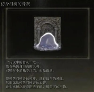艾尔登法环如何获取仿生泪滴?在艾尔登法环中玩家们可以在特定的地点以及boss战使用骨灰来帮助玩家们战斗,在游戏中有一个非常强力的骨灰-仿生泪滴,可以模仿玩家们角色属性以及装备的骨灰,非常的强大可以很好地帮助到各位玩家们。许多玩家不知道如何获取仿生泪滴,这边小编就来帮助玩家们获取仿生泪滴,感兴趣的玩家就一起来看看吧。
