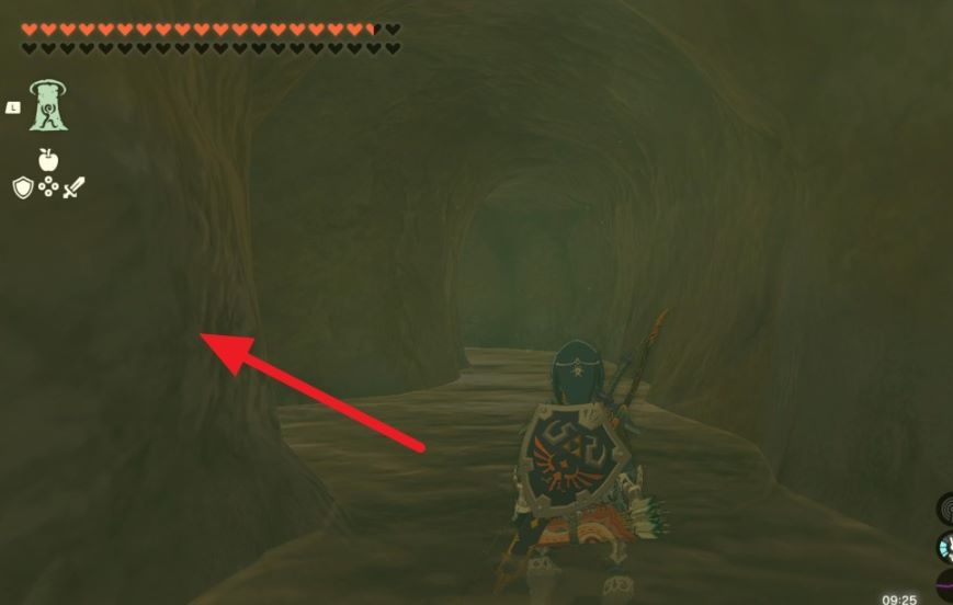 3、在下面我们会看到一堵石墙,破开后向左走。