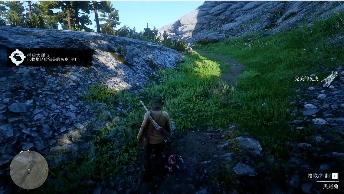 2、如果碰到的兔子一直都是一星两星的,我们可以重新去做何西阿的任务“自尊,负伤离场”,这里何西阿让你打的兔子必定是三星兔子,使用捕猎步枪爆头3只后剥皮就好。(记住要把任务做完,否则不算完成挑战)