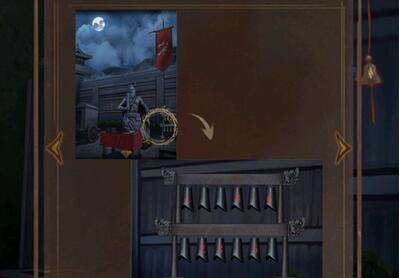 2、玩家点击编钟架,按照之前在军礼记书籍上找到的线索,按照上下下上下上的顺序来敲编钟。