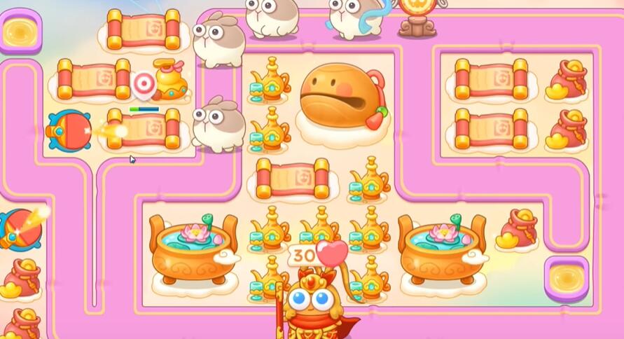 5、兔子来左边先打卷轴,后打荷花缸,求稳可以把兔子直接打掉。