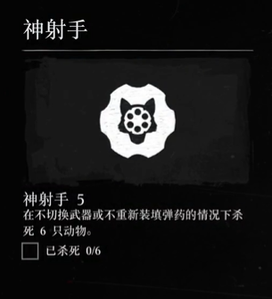 在不切换武器或不重新装填弹药的情况下杀死六只动物。