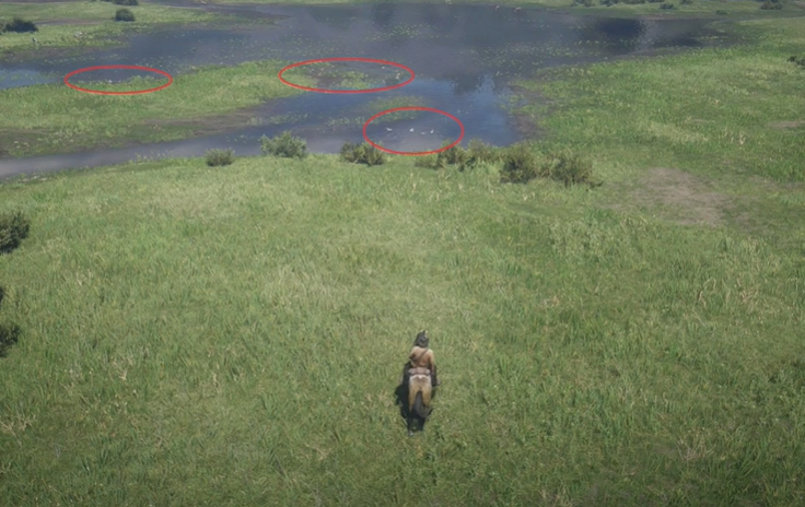 2、在白天时如图所示红圈标出来的位置会刷新野鸭群。