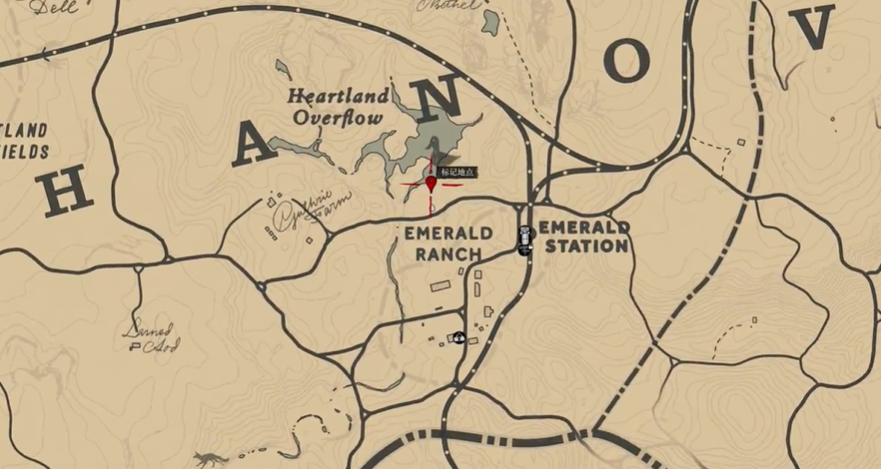 1、我们来到翡翠牧场如图标记的位置。