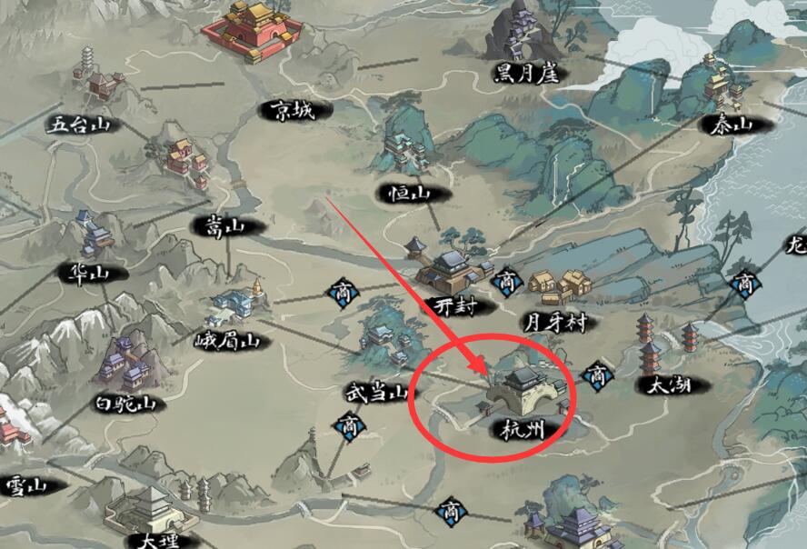 1、打开大地图进入杭州;