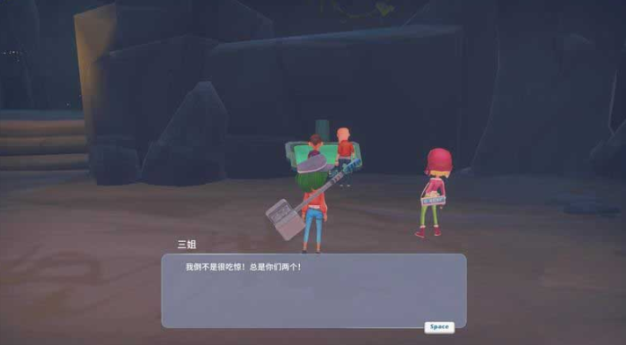 5、之后我们再去找三姐,和她一起进入洞穴,就会看到前方有两个人在研究先知电脑。