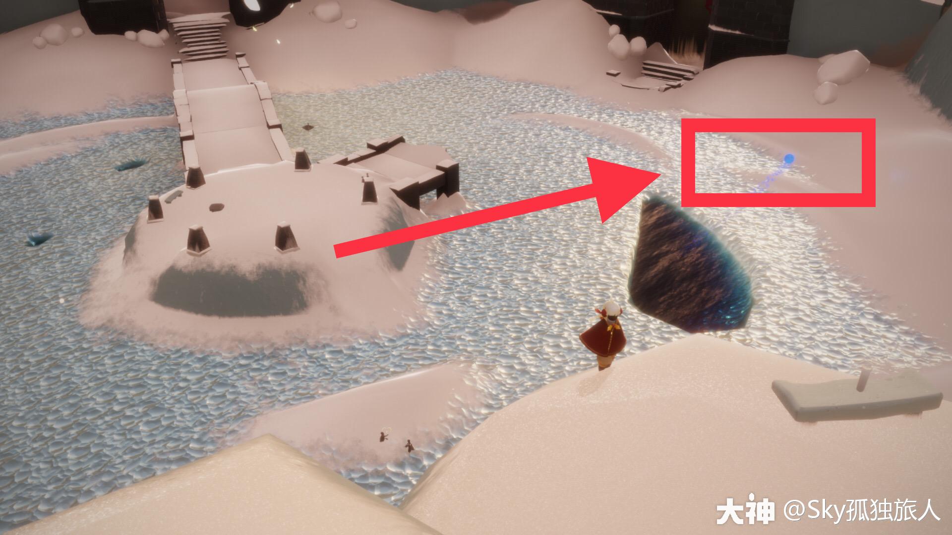 蓝色光芒在下霞谷的 溜冰场,靠近即可收集。