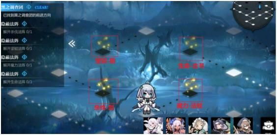 本关需要解开四个法阵,通过四次战斗获取,对应顺序如下:
