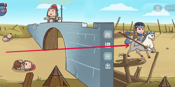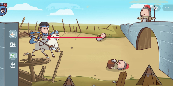 2、点击右侧的城墙,拖动赵云进行进来进去,一共六次。