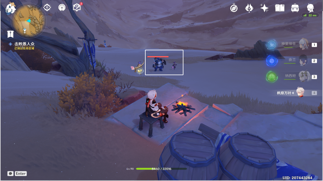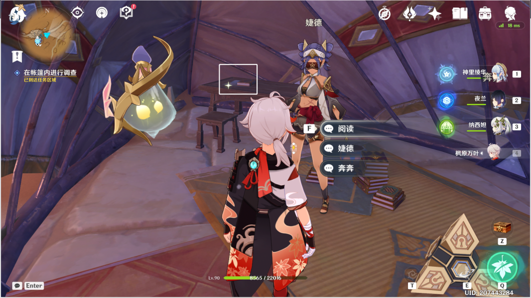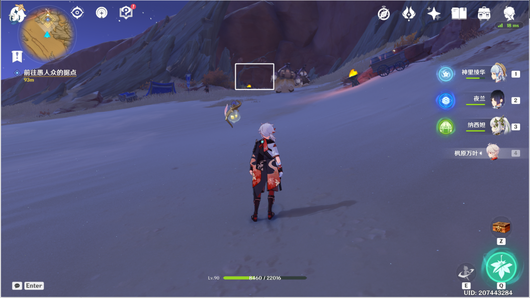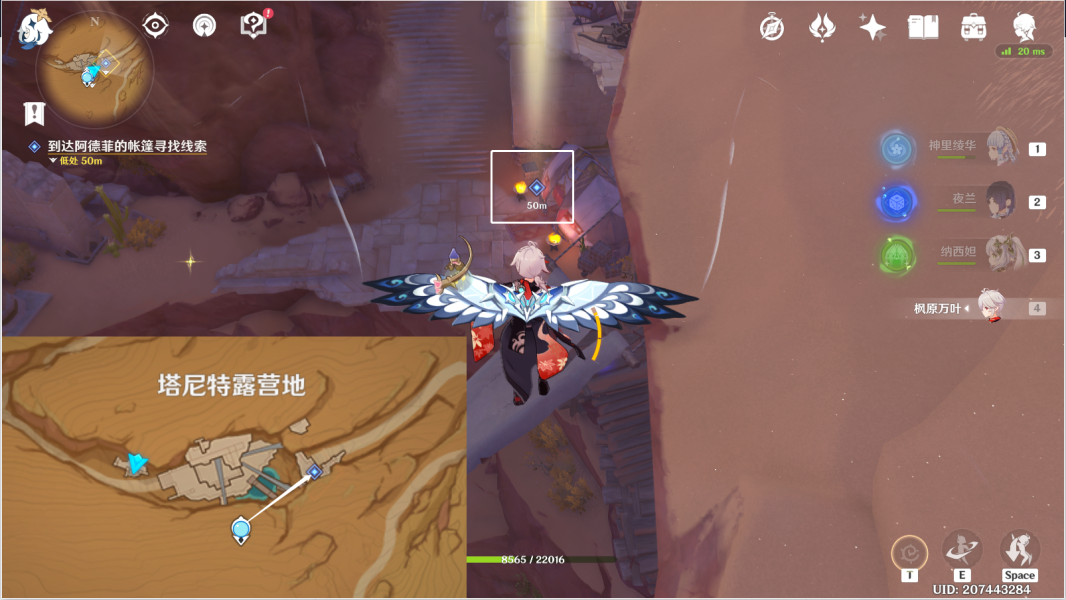 3、传回神像,往地图东北方,向下飞,去到帐篷门口。