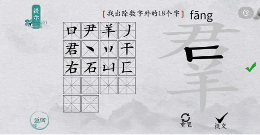 5、第五行,从左往右的答案分别是:【丆、羣】 。