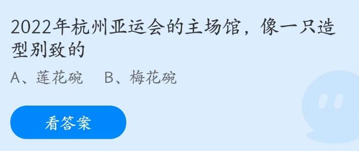 2023年5月10日的蚂蚁庄园小课堂其中一个问题是:杭州亚运会的主场馆像一只别致的?大家可能会不太了解这个问题的答案,那么这个问题的答案究竟是什么呢?现在就为大家提供了答案,一起来看看吧。