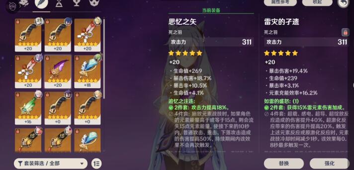 如果是走激化流的刻晴,那还是如雷要比追忆好的,因为激化流刻晴的伤害主要来源于反应。而如雷四件套刚好就是增加激化的伤害。