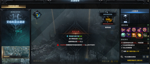 当玩家完成指定的主线任务,等级达到50级,装备等级达到340级,可以进入深渊地牢。
