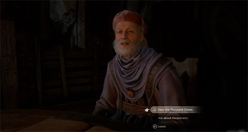 1.哈尔波克拉特斯是藏身处的说书人,可以在任务期间与其交谈来得知跟随剧情进度解锁的相关知识并提升等级。