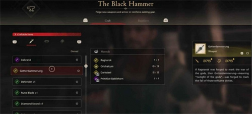 集齐所有材料后,返回藏身处的铁匠布莱克索恩处制作众神陨落。