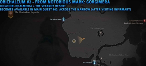 奥利哈康位置2:由恶名精英【强化奇美拉】掉落,位于达尔梅奇亚-维尔克洛伊沙漠(西南边)。