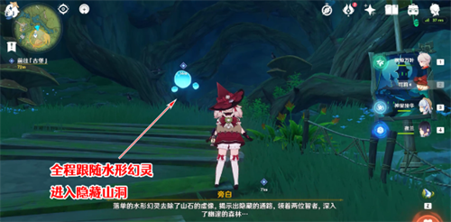 2、看完剧情需要先前往「古堡」,跟随水形幻灵慢慢前进即可,它会为我们消除路上山石的虚像,揭示出隐藏的通路;