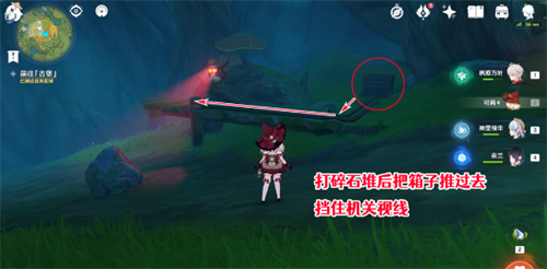 8、之后将石堆下的木箱移动至滑轨另一侧,以挡住其视线,就可以使水形幻灵恢复原状;