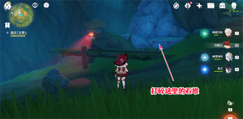 7、等救出水形幻灵后还没走几步,就在转角处遇到了第三处幽魂机关,这里需要先打碎旁边的石堆;