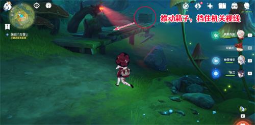 5、拿完宝箱后,紧接着就会遇到第二处幽魂机关,将滑轨另一端的木箱移动至机关面前,挡住其视线即可;