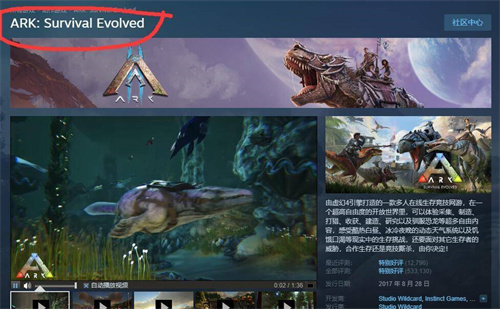 2,然后就可以发现这款游戏就是方舟:生存进化,所以英文名叫ARK: Survival Evolved。