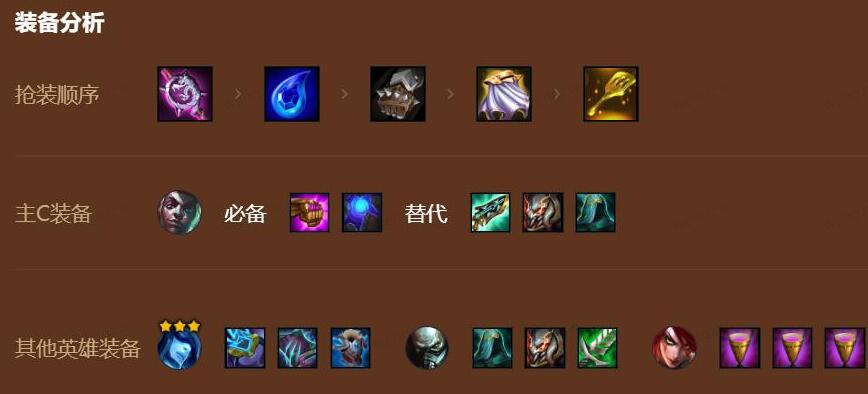 前期虚空法师过度,3虚空2法师,维克兹的装备优先给马尔扎哈,可以保证前期阵容输出,但是怕潜行者,卡特和劫,遇到劫扎堆站。
