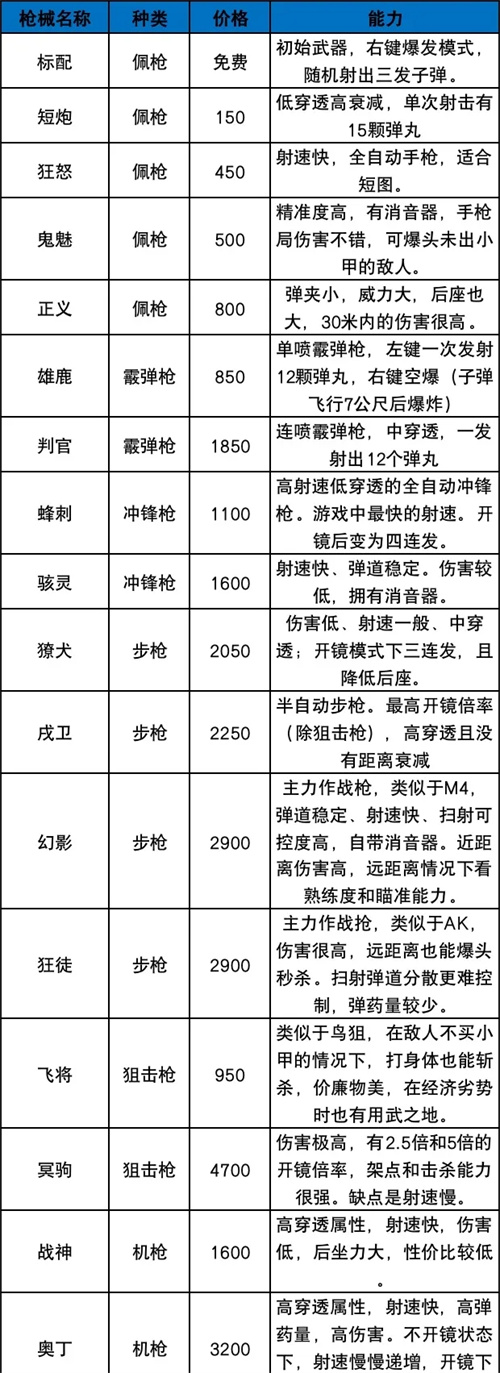 游戏中枪械种类一共有6种,这里只基础介绍下各枪械的能力。具体到与英雄能力、作战地图搭配不同武器,则需要小伙伴们自行思考(也是游戏的乐趣之一),这里不做更多赘述。