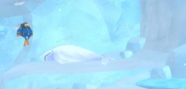 5、游到岔路口时,选择右下方向,即可看到白鲸。