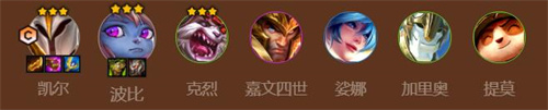 阵容推荐:凯尔,波比,克烈,嘉文,琴女,加里奥,提莫