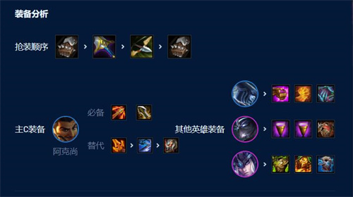 阵容推荐:阿克尚,丽桑卓,慎,猪妹,雷克顿,狗头,艾希