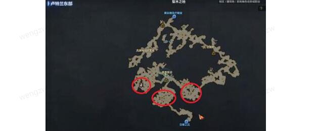 1、地图中的红圈位置是地精所在区域,打掉后有几率获得任务书信。