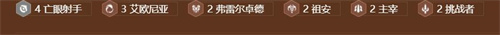 羁绊:4亡眼,3艾欧,2弗雷尔卓德,2祖安,2主宰,2挑战