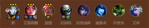 阵容推荐:烬,刀妹,瑟提,螃蟹,厄斐琉斯,丽桑卓,沃里克,艾希