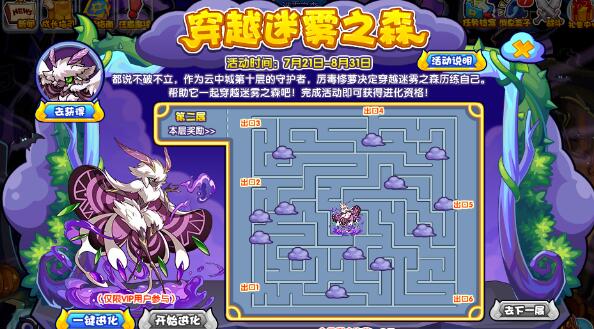 都说不破不立,作为云中城第十层的守护者,厉毒修萝决定穿越迷雾之森历练自己。帮助它一起穿越迷雾之森吧!完成活动即可获得进化资格!(本活动仅限vip用户参与 )