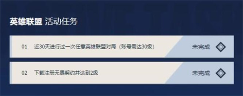 玩家需要在近三十天内进行过一次任意英雄联盟对局,对局账号必须达到30级,并且下载注册无畏契约达到2级。
