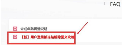 2、接着我们在客服页面中找到用户登录被冻结解除图文攻略,在攻略中我们能看到解除网址;