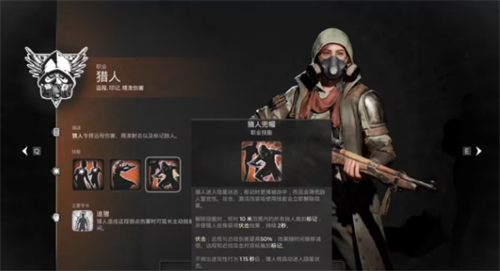 中远距离精准输出;大范围自动标记增伤;增伤减后座;隐身;团队标记透视增伤,被动弱点命中延长技能;初始武器栓动步枪。