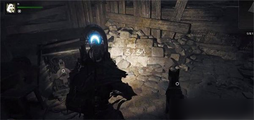 3、继续使用手电筒照亮周围的墙壁,找到图中的数字最亮的一个,可以得出第二个保险箱秘密为:5