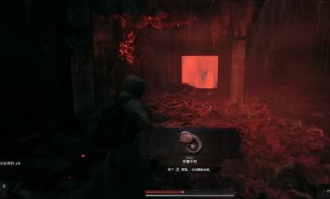 3、玩家在触发剧情后需要在红色门的左侧拾取绿光道具完成对话,玩家使用恢复进入下一个房间。