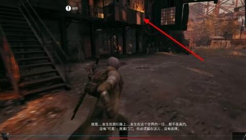 2、玩家需要按E键和门互动来触发剧情,然后玩家需要从门左边的箱子向上爬,从内部把门打开。