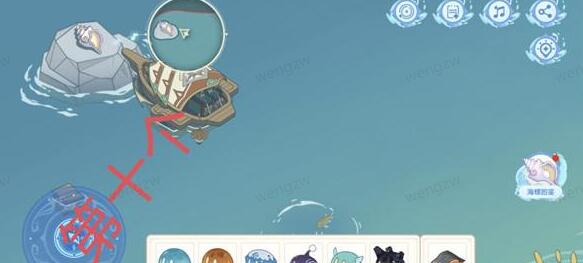 11、第十处:这一处我们需要先激活一下浪船锚点,然后操纵驾驶浪船前往孤岛,然后即可获得第十个海螺,最后点击海螺即可;