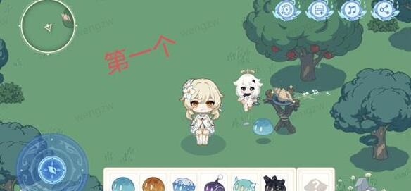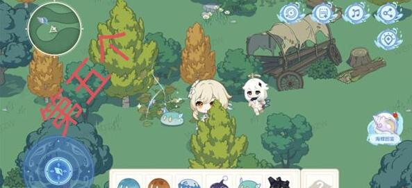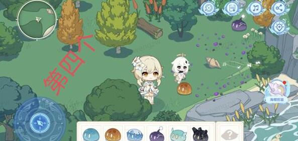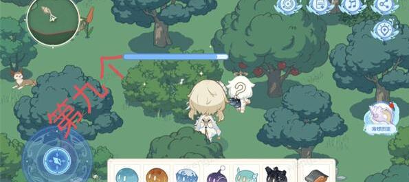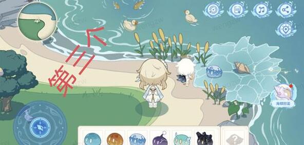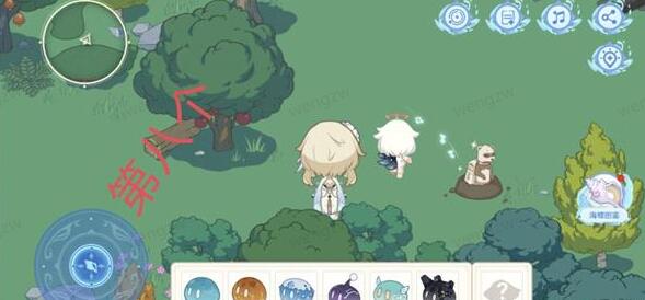 7、第六处:我们操纵旅行者来到这个地方后,点击不是萝卜的那一丛草,然后会出来一个草史莱姆,随后我们就会获得第六个海螺,最后点击海螺即可;